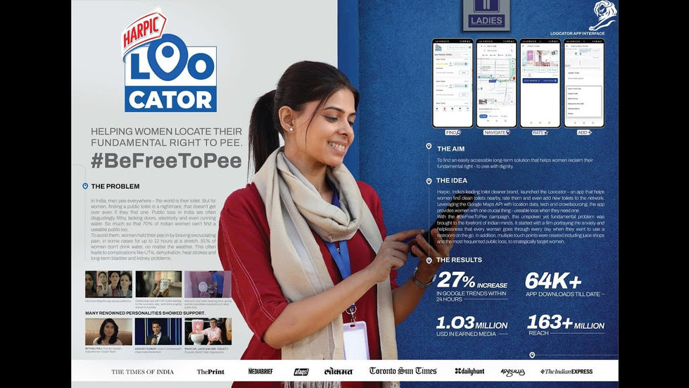 Harpic, India's leading toilet cleaner brand, launched the Locator - an app that helps women find clean toilets nearby, rate them and even add new toilets to the network.